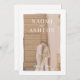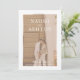 Moderne Hochzeitseinladung mit weißem Pinselrahmen und traditionell eleganter Typografie im Foto.