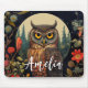 Mouse pad with a cool looking owl with a piercing stare. A full moon in the back with a garden of red flowers.
