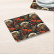 A paper coaster (sturdy pulp board) with a cool looking owl with a piercing stare. A full moon in the back with a garden of red flowers.