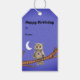 Diese Geschenketiketten sind lila mit einer bräunlichen Eule, die auf einem Baumzweig sitzt und eine lila Kristallhalskette mit weißem Halbmond trägt. Passen Sie Ihren Text mit den Vorlagen vorne und hinten an.