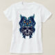 Dieses visuell auffällige Bild zeigt einen Schädel, dessen Kopf einer Eule überlagert ist. Die Augen der Eule sind groß und ausdrucksstark, während sich ihre Federn nahtlos in die Knochenstruktur des Schädels einfügen. Die Farbpalette besteht aus einer Kombination aus Blau, Weiß und Schwarz, wodurch ein bemerkenswerter Kontrast entsteht. Das Bild wird in einem kühlen, grafischen Stil mit starken Linien und lebhaften Farben dargestellt.