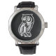 Uhr, Vintage Männeruhr mit schwarzem Lederarmband