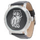Eule-Symbol. Symbol der Weisheit und des Reichtums. Weißes durchsichtiges Design, geeignet für dunkle Objekte.