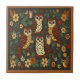 Owls Forest Tiere Erde Töne rustikale Boho Keramik Fliesen ist eine naturlich inspiriert Dekoration. Die fünf Eule, die in einem Baum sitzen, umgeben von Blume, Orangen-, Gelb- und Grüntönen