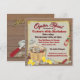 Rustikale Oyster Roast Party Einladung mit Buschkorb voller leckerer Austern, umgeben von kaltem Bier, Mais auf dem Cob, geschüttelte Austern, heiße Sauce, Zitronenscheiben und ein Austernhemd auf Vintagem Papier auf einem Holzplankboden. Ideal für Geburtstage, Wiedersehen, Ruhestand oder jedes Party, das die Auster feiert. Handgezeichnete Abbildung von McBooboo.