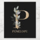 Letter P monogramm floral. Letter P in goldbrauner Textur mit grünen Aquarellfarben Blätter, Blume Blüten und Goldstaub. Personalisiert mit Namen in passendem Schriftart.