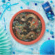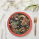 Papierteller mit asiatischen Drachen, die auf schwarzem Hintergrund zwischen den Blume fliesen. Perfekt für Chinesisches Neujahr, besonders im Jahr des Drachen!