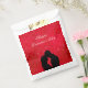 Moderne schwarze Silhouette eines liebevollen Ehepaares auf rotem Hintergrund mit Herzen