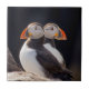 Paare Papageientaucher, die in den entgegengesetzten Richtungen auf Felsen Farne Inseln, Northumberland betrachten. Großes Foto für einen Titel.