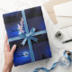 Ideal für Weihnachtsgeschenke! Weihnachts Schlittenpackung. Schönes dunkelblau mit funkelnden Sternen, Rentieren und Kiefern