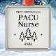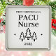 Erste Weihnachten als PACU Krankenpflegerherz-Ornament für einen neuen Job in der Pflege in der Post-Anästhesie-Einheit. Eleganter Luxus-Stil Ferien-Ornament in Weiß mit schwarzen Buchstaben, mit minimalen Weihnachtsbäumen und Sternen.