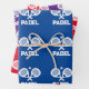 Padel Schläger Weihnachtsverpackung Papier Blätter. Spaß Farbe Geschenkpackung für Weihnachten, Geburtstag und mehr. Blaurot und pruple Beispiel. Fröhliches Musterdesign für Padel-Liebhaber, Tennisspieler, Fan, Freunde, Familie, Sporttrainer, Kinder etc. Gute Ferien! Personalisieren Sie mit Ihrem eigenen Namen.
