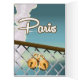 Paris adore les cadenas vintage poster de voyage. Cartoon Paris france love bridge.