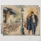 Page Romantic Parisienne Junk Journal. Avec des oeuvres d'art de chaque côté, représentant le style de vie parisien, avec des scènes romantiques de couples, de cafés, de rivière et de la Tour Eiffel. Avec une sensation vintage. Pour vos projets de journalisation et de scrapbooking.