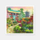 Japanischer Garten Pagoda Sakura und Wasserfall Ölmalerei Imitation. Cherry Blossom, Blume, schöne chinesische Gebäude im japanischen Stil, sehr bunt und Feng Shui freundlich