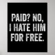 Paid No I Hate Him For Funny Sarcasm Quote Poster