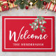 Bienvenue famille et amis à votre porte ce Noël avec ce tapis de portes festif. Il est décoré d'un faux-pied aquarelle sur un arrière - plan rouge. Facile à personnaliser. Utilisez l'outil de conception pour modifier la taille, le style ou la couleur du texte. Lorsque nous créons nos oeuvres, vous ne trouverez pas ces images exactes d'autres créateurs. Aquarelle originale © Michele Davies.