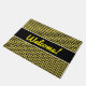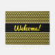 Caractéristiques de conception ce de porte de tapis une ligne onduleuse jaune et noire motif. Il comporte également la salutation amicale "accueil !" sur l'avant en jaune manuscrit-comme le texte.