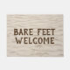 Panneau de bienvenue pieds nus sur motif de sable de plage ondulé.