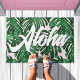 Paillasson Aloha Pink Green Feuilles Tropical Script Jungle