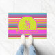 Faites de votre entrée une entrée ! Ce mat de porte rayé multicolore lumineux dit bienvenue d'une manière vibrante. Personnalisé avec votre monogramme initial en lettres courbes, il présente également votre nom dans une large bande. Des rayures colorées en rose, orange, rouge, vert et blues - une affirmation moderne et vibrante maximaliste.