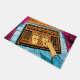 Le pied d'une personne est scanné sur un tapis de porte de style code-barres avec les mots Pied de scanneur de code-barres imprimés dessus. Bienvenue à vos proches dans le style avec ce - Amuse Barcode Design - Analysez vos pieds avant d'entrer mat de porte.