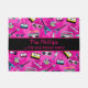 Ce matelas à plateau-coussin, avec literie de qualité supérieure et draps en coton égyptien, vous garantira une bonne nuit de sommeil. Avec un arrière - plan rose aux instruments de musique colorés, palmiers, lunettes de soleil... Il y a une boîte rose et jaune au milieu qui indique le nom de votre famille "...une famille branchée et branchée".