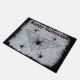 Ce tapis extérieur de porte d'accueil est noir avec un centre peint en blanc rustique avec des araignées noires rampantes avec des marques en sablier rouge et une toile triangulaire noire. Customisez votre texte avec le modèle.