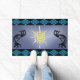 Southwestern Arizona Sun Kokopelli Rug Doormat Couleur bleu vif qui vous permet de customiser des couleurs arrière - plans à votre décor. Les cultures amérindiennes de Kokopelli. Attribué à des aliens anciens ou à l'art tribal et inspiré de dessins rupestres et rupestres. Customisez vos couleurs et styles de tapis de porte de style sud-ouest Amérindien. Super idée cadeau.