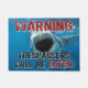 Faites peur à vos ennemis, vendeurs de porte en porte ou Témoins de Jéhovah avec ce tapis de bienvenue aux requins affamés montrant un grand blanc nageant des profondeurs de l'océan pour prendre une bouchée de quiconque ose se tenir en travers de son chemin.