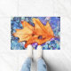 Une jolie aquarelle d'une feuille d'automne brune contre un arrière - plan d'eau bleue.