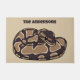 Ce tapis de bienvenue est une illustration réaliste d'un serpent python à bille enroulé en brun foncé et bronzé. Il est prêt à être personnalisé avec un nom en lettres brun foncé. Fait un grand cadeau pour les propriétaires de serpents d'animaux de compagnie.