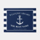 Une natte comportant une ancre nautique et le nom fait sur commande du propriétaire de bateau et du bateau. Des côtés sont la marine et les rayures blanches pour compléter le texte avant.