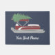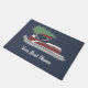 Créez un décor de vacances personnalisé pour votre maison ou votre bateau. Ce tapis de porte personnalisé est illustré par un ponton rouge et blanc avec un arbre de Noël vert attaché au sommet contre un arrière - plan bleu. Il est prêt à être personnalisé avec le nom de votre bateau en lettres blanches.