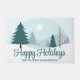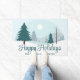 Un magnifique paysage hivernal avec pins verts turquoises et terrain couvert de neige sur un tapis de porte de vacances d'affaires personnalisé. Customisez cette société Happy Holidays décor avec votre propre nom d'entreprise.