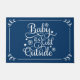 Ce tapis de portes festif pour les vacances comprend "Baby it's Cold Outside" en caractères blancs avec des accents de flocon de neige et d'étoile, et un design de bordure de défilement. Couleurs bleu marine et blanc.