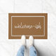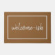 C'est drôle parce que c'est vrai. Vous êtes bienvenus. Ce tapis de porte humoristique s'adresse aux introvertis, aux anti-sociaux et aux maladroits socialement, qui reçoivent les invités avec un peu de réticence et peut-être même un peu d'anxiété. Une typographie de script simple et élégante sur un arrière - plan taupe couleur cocomat. Inattendu, décalé et juste un peu sarcastique.