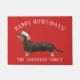 Paillasson de Noël adorable avec un Black & Tan Dachshund portant un chapeau santa sur un arrière - plan rouge festif.