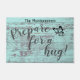 Bienvenue à vos invités avec cette typographie de script amusant design de tapis de porte rustique personnalisée avec un nom et "Préparez-vous pour un câlin". Remplissez le champ de texte avec un nom de famille, supprimez le nom ou cliquez sur personnaliser pour sélectionner le style, la taille et la couleur de police que vous préférez.