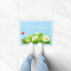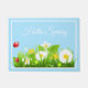 Doormat est montré avec un arrière - plan bleu ciel clair et bordure blanche avec un texte de printemps bonjour et une belle impression de fleurs. Couleur : Ciel clair bleu. Customisez cet objet ou achetez tel quel.