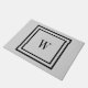 Simple, classique ou moderne, et élégant. Comprend 2 bordures de bande noire, une bordure intérieure et extérieure. Il vous suffit de personnaliser avec votre nom de famille initial, ou monogramme complet dans le centre. Pour 3 initiales, customisez et choisissez la taille du numéro de texte 72 pour la réduire à l'ajustement. Sur un arrière - plan gris masculin, ou customisez et changez en gris foncé, blanc ou toute couleur. Utilisez la pipette pour avoir plus de choix de couleurs. Convient uniquement au petit produit. Pour vous-même, ou fait un joli cadeau pour un ménage, ou pour comme mariage ou douche nuptiale.