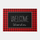 Paillasson Buffalo plaid noir Bienvenue nom de famille script