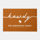 Offrez un grand Texas bienvenue à tous ceux qui viennent chez vous avec ce design. Le mot "howdy" s'écria dans une grande police manuscrite sur la forme d'état. Personnalisez avec votre nom de famille ou un message supplémentaire. L'Arrière - plan utilise les couleurs des écoles publiques avec une couleur légèrement plus foncée dans un motif en pied de bois pour un look intemporel. Design disponible en orange brûlé, vert, rouge, violet, bleu, noir et marron.