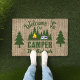Bienvenue à notre typographie de Camper avec votre nom de famille avec un camper dans les bois. L'arrière - plan est un burlap pour une ambiance rustique.