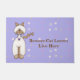 Tapis de porte de l'amant Lavender kitty, avec un motif à points blanc et rose. Caricatures d'un chat siamois, décorent le côté gauche du tapis, avec du texte marron personnalisé sur le côté droit. Personnalisez le texte pour lire ce que vous voulez.