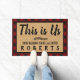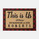 Tapis de porte texte "This is Us" avec un silhoutte en feuille de fougère. Joli, à damiers aspect rustique de la ferme - bordure rouge et noir plaid et faux burlap centre. Utilisez le modèle facile pour customiser le nom. Cette conception fonctionne le mieux sur la taille plus grande. Pour commander une taille plus petite, visitez le site https://www.zazzle.com/this_is_us_black_red_buffalo_check_plaid_custom_doormat-256569753728900941