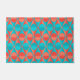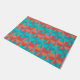 Ce paillasson est décoré dans un style art déco de cercles orange et turquoises à l'intérieur de triangles orange et turquoises à deux tons.