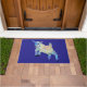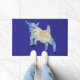 Illustration de chèvre de porcelaine mignonne sautant. L'art coloré adorable animal de ferme en bleu, violet, jaune et orange sur le design arrière - plan violet pour ceux qui vivent la chèvre. Oeuvre originale de l'artiste Catherine Sweetman.