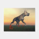 Chien de great dane se tenant dans l'herbe à côté du temps nuageux