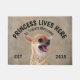 Chihuahua en colère Amoureux des chiens personnalisé mat de bienvenue. Ce tapis de bienvenue peut être personnalisé avec le nom de votre chien, le slogan peut aussi être changé ou vous pouvez utiliser une photo de votre propre chien (assurez-vous qu’elle est transparente). Texte : Princesse vit ici... Tous les traitements sont les bienvenus Modifier le design pour changer la police, les couleurs et la couleur arrière - plan. Lorsque vous remplacez l'image de votre chien, utilisez une image transparente. Fait un cadeau merveilleux pour une fête de ménage, vacances, amoureux de les chiens et la plupart de toutes les occasions.